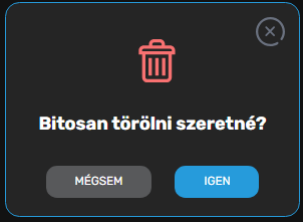 A rendszer visszakérdez, hogy biztosan törlöd-e a felhasználói fiókot, amennyiben “IGEN” úgy a felhasználói fiók helyreállíthatatlanul törölve lesz 4. ábra.